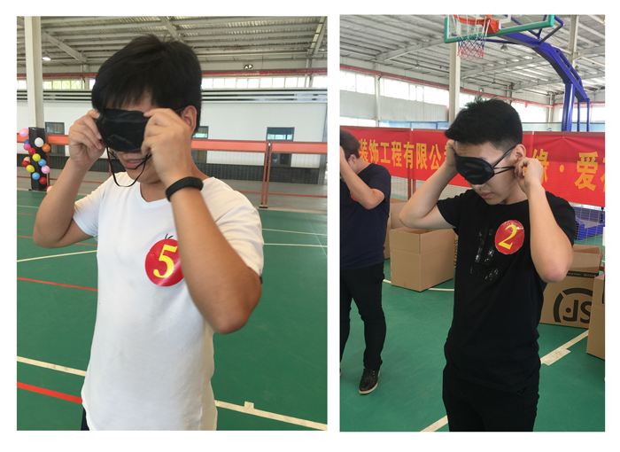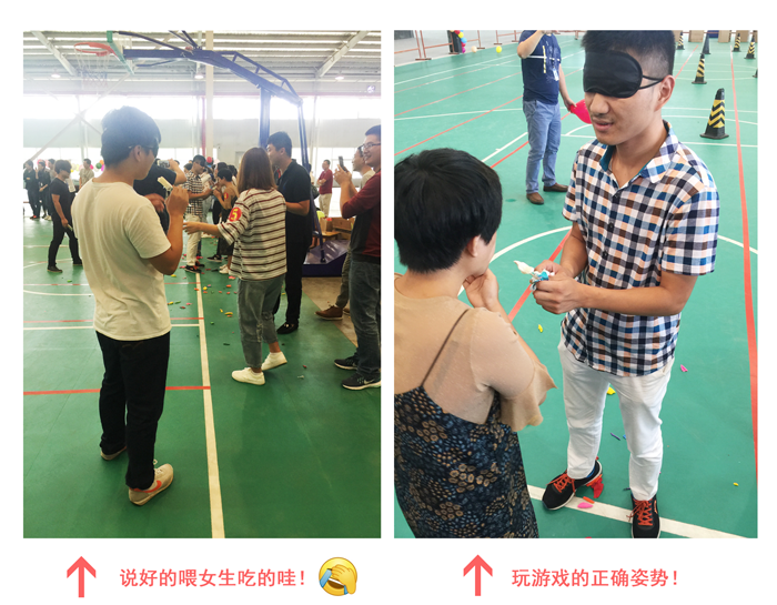 【游戲規(guī)則:男生在起點(diǎn)蒙上雙眼并拿上一根雪糕,原地轉(zhuǎn)五圈后繞過(guò)障礙物跑向終點(diǎn),找到相應(yīng)號(hào)碼的女生后喂她把雪糕吃完(注意:是喂女生吃,不是自己吃!),最終以吃完雪糕的順序判斷勝負(fù)!】
