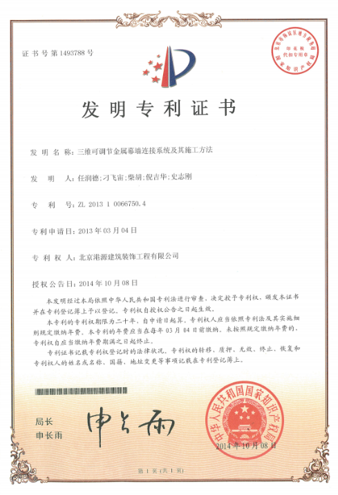發(fā)明專利-三維可調(diào)節(jié)金屬幕墻連接系統(tǒng)及其施工方法