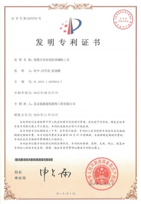 發(fā)明專利-便攜式美紋紙膠帶鋪貼工具