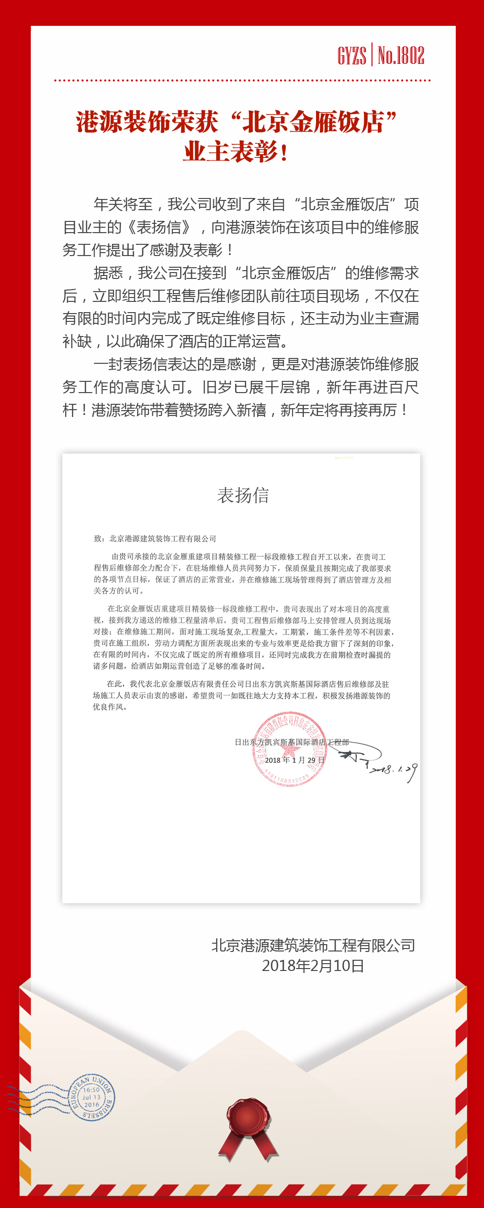 港源裝飾榮獲“北京金雁飯店”業(yè)主表彰!