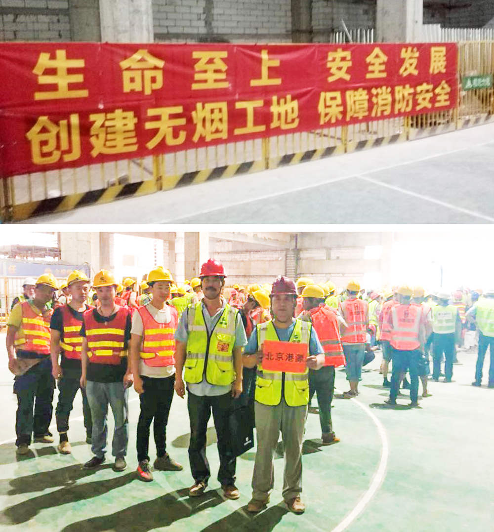 北京世園溫泉酒店項(xiàng)目部,組織項(xiàng)目管理人員及施工人員針對(duì)機(jī)械傷害、防觸電、高空墜落等事故的防護(hù)進(jìn)行培訓(xùn)。