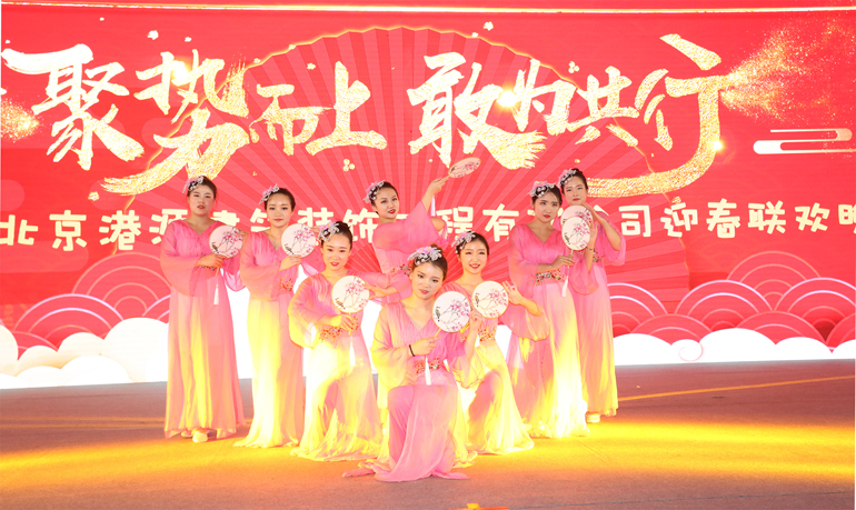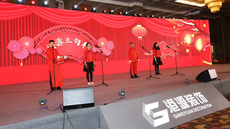 年會(huì)結(jié)束后,精彩紛呈的迎春聯(lián)歡晚會(huì)拉開了帷幕。晚會(huì)上,13個(gè)文藝節(jié)目均由港源裝飾各單位選送。
