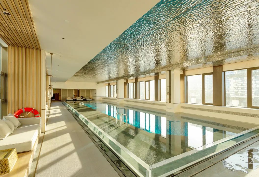高層泳池位于酒店五樓,在擴(kuò)大使用面積的同時升級改造為無邊泳池,屬于酒店施工的重點(diǎn)控制區(qū)域。港源項(xiàng)目團(tuán)隊(duì)在泳池施工過程中嚴(yán)格把關(guān),采用透明材質(zhì)作為護(hù)欄,當(dāng)池水恰好漫過護(hù)欄便呈現(xiàn)出無邊水面效果,完美實(shí)現(xiàn)了設(shè)計(jì)初衷。