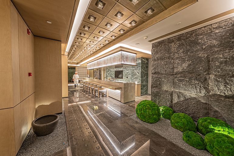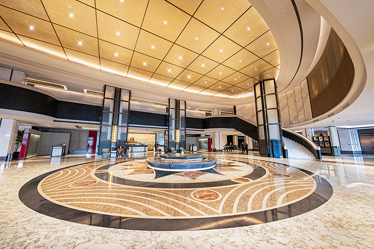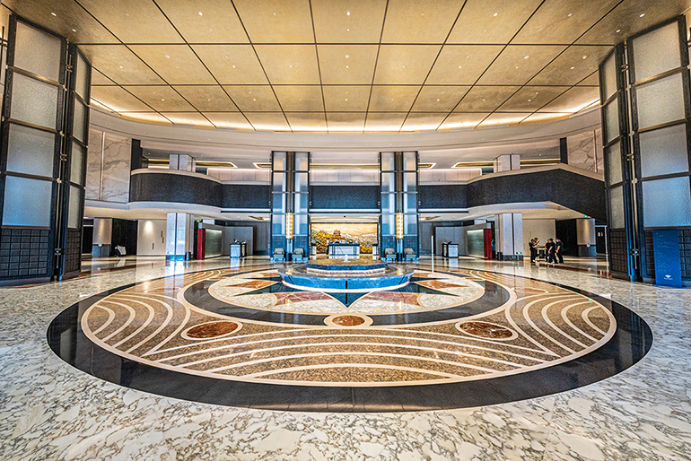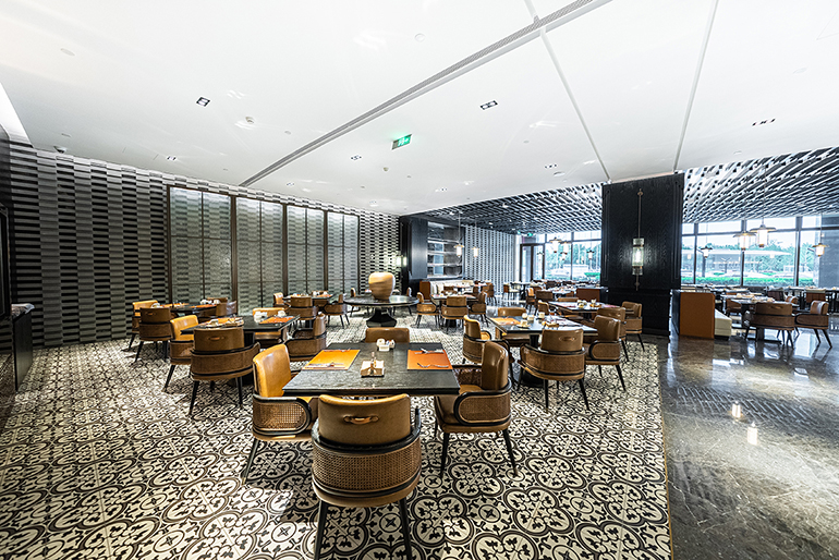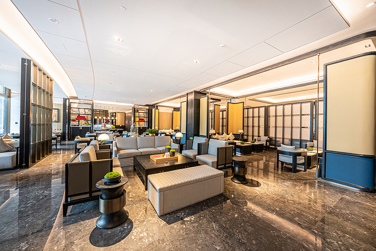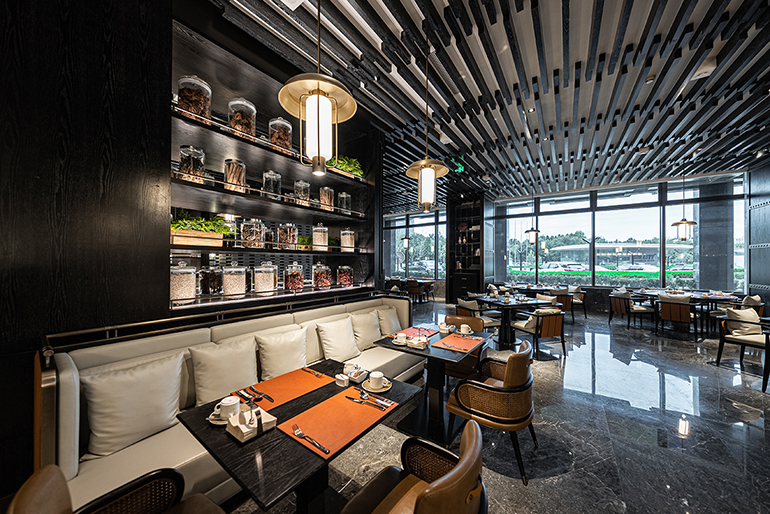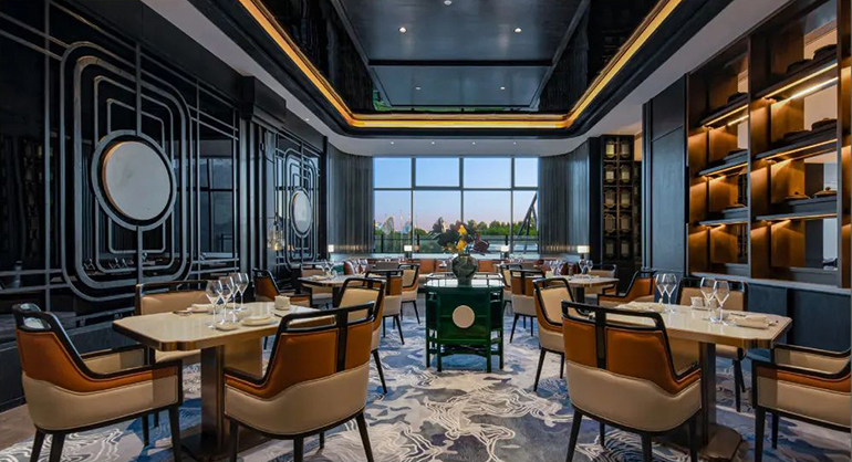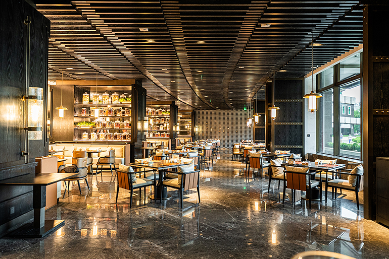 這是一座無法批量施工的項目:氣勢恢宏的無柱宴會廳、素潔靜雅的辰山中餐廳、中西合璧的新福席特色餐廳……每個空間都有其獨特的美學蘊含,僅在港源施工范圍內(nèi)的空間就涉及