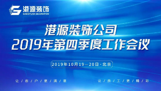 2019年10月19-20日,港源裝飾第四季度工作會(huì)議在北京總部召開。江河集團(tuán)總裁許興利率集團(tuán)行政人事總監(jiān)劉宇、商務(wù)總監(jiān)楊濤等領(lǐng)導(dǎo)出席會(huì)議。